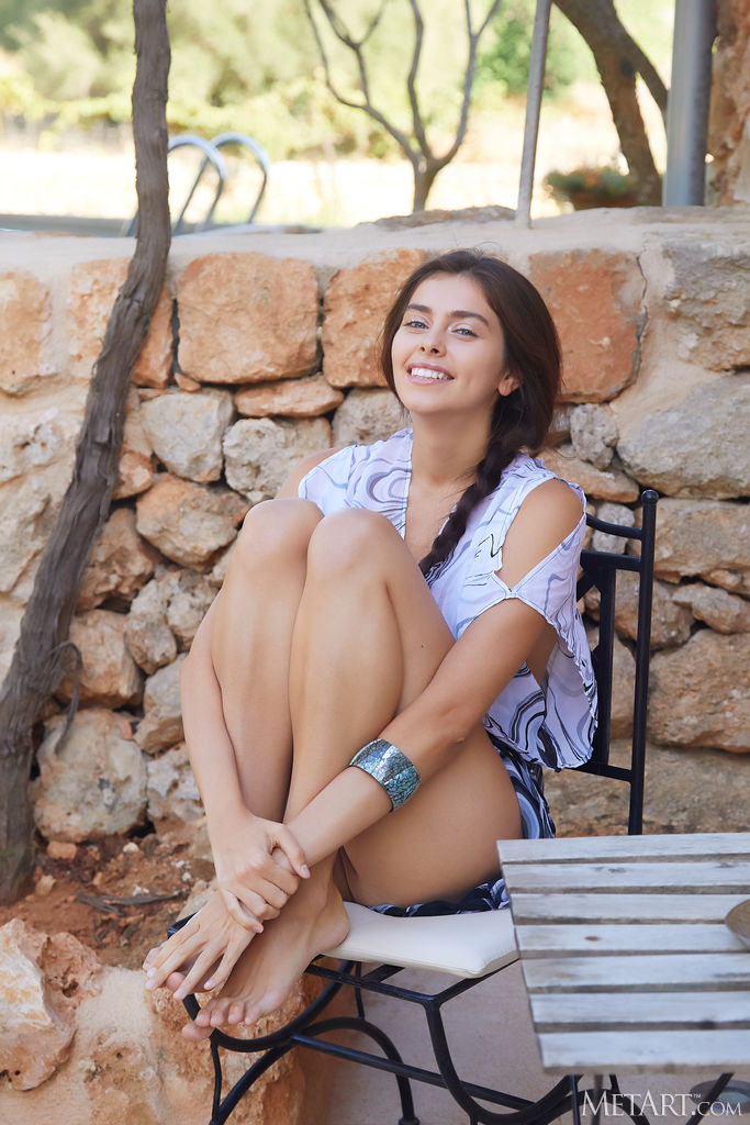 Eve Sweet - MetArt Brunette Strips A Sundress Outdoors